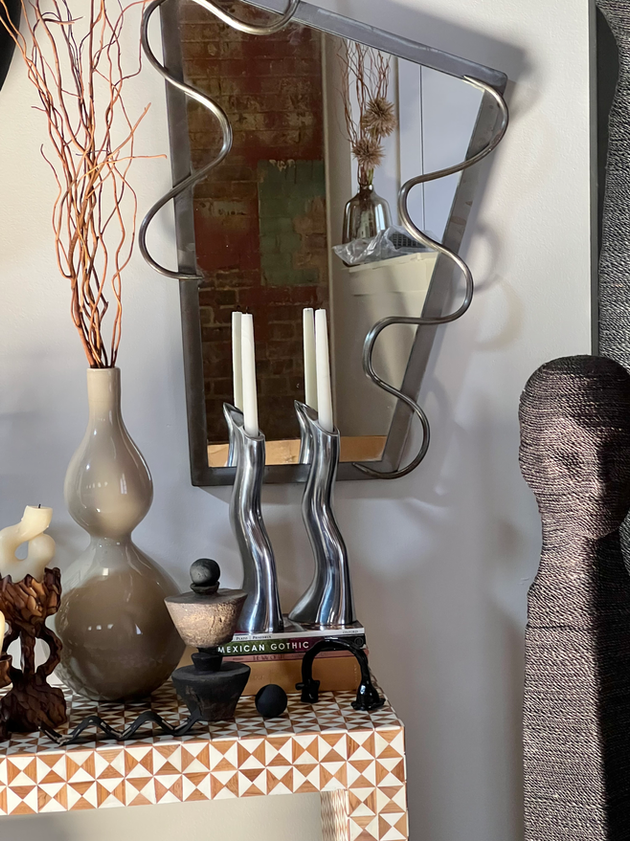 This full home design was inspired by organic materials and shapes with the contrast of postmodern nonconformity. Distinguished by an eclectic marriage of nature and surprises of shining chrome, this home encapsulates sophisticated whimsy.